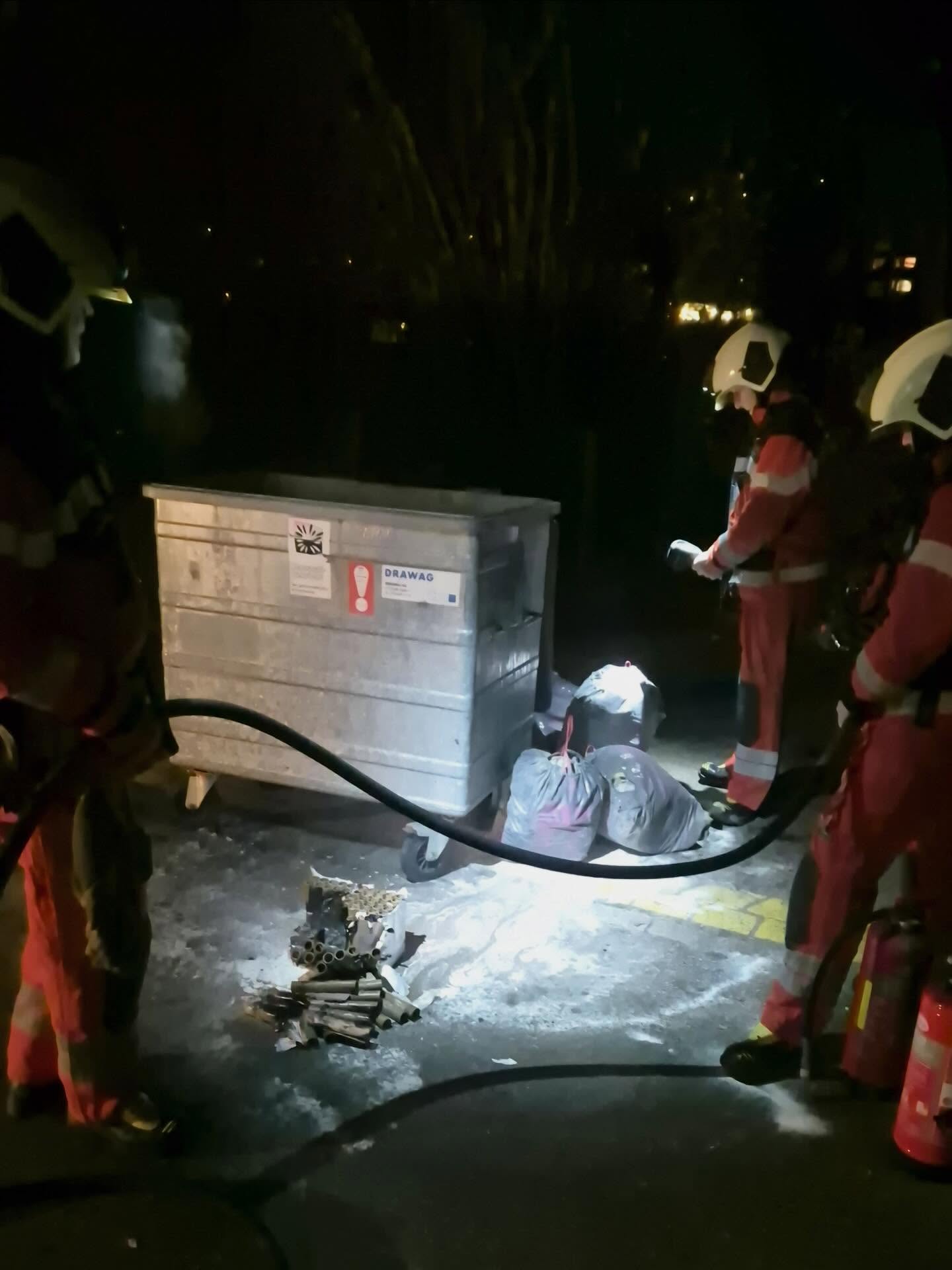Ein zu früh im Container entsorgter Feuerwerkskörper führte zu einem Einsatz kurz vor Mitternacht.